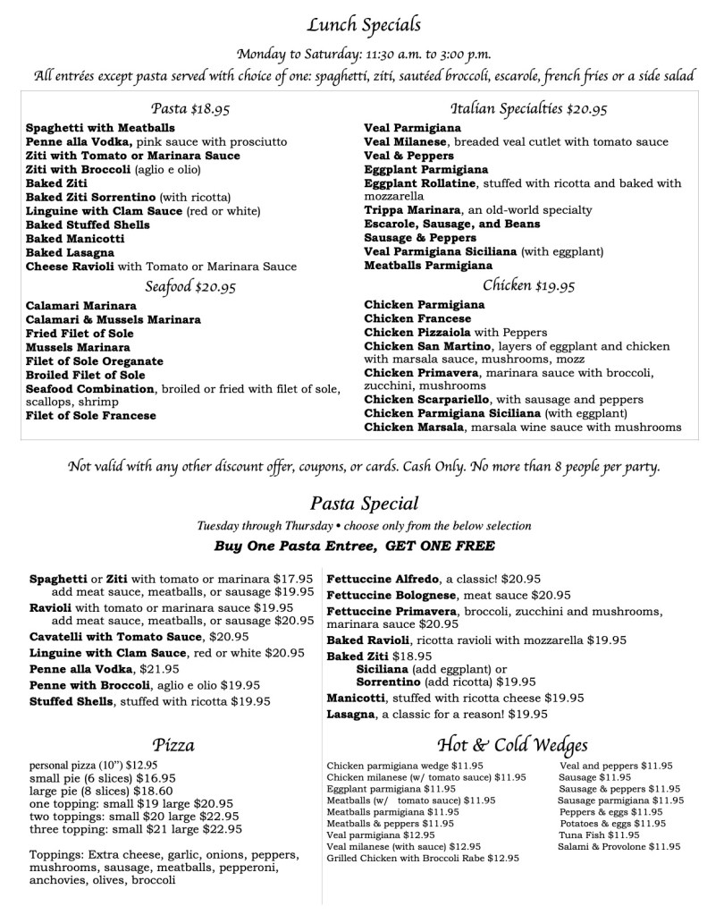 Lunch Menu Lunch Specials Monday to Saturday: 11:30 a.m. to 3:00 p.m. Please no substitutes. Sharing $4 per person. Not valid with any other discount offer, coupons, or cards. No more than 8 people per party. Like Loading...